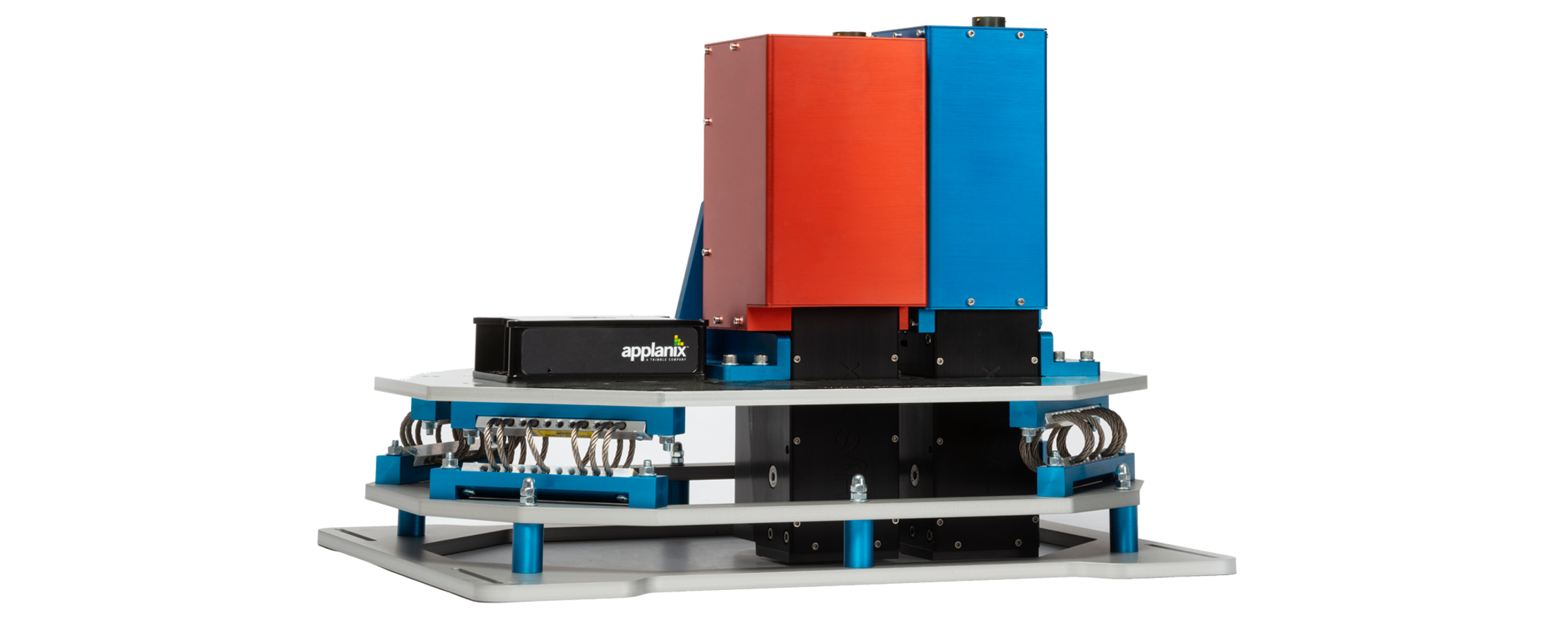 The passively damped vibration mount, developed by HySpex, can accommodate two HySpex cameras and an IMU/GPS unit.