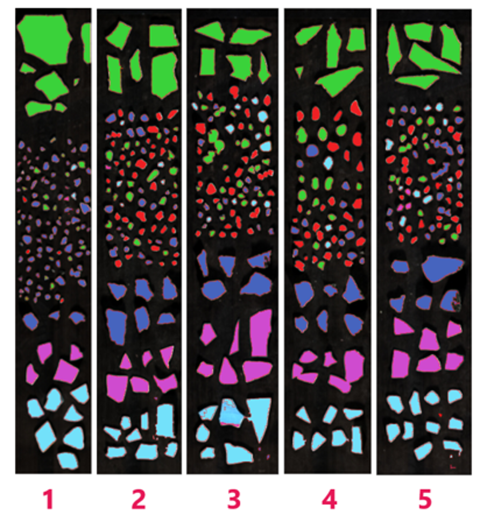 Although the SWIR reflectance spectra of the five different classes look similar, the different materials all have spectral features that are unique enough to separate them from each other and to create a robust classification model. All pieces of asbestos, concrete, ceramic, and terracotta were correctly assigned to their classes – even the smallest ones. The rubble pieces were of varying type and hence not given their own class. The majority were correctly detected as no class but some were identified as part of one of the other classes. This could be either false positives or misidentification during the preparation of the samples. If needed, the varying spectral properties of this group can be analyzed in detail and included in the model.