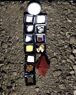 Different types of explosives were tested, both pure explosives in powder form and mixes containing several ingredients. The samples were put in black plastic cups and onto a tray filled with grass or soil as background. The different samples used are listed in the table below in the same order as the sample setup shown in the image.