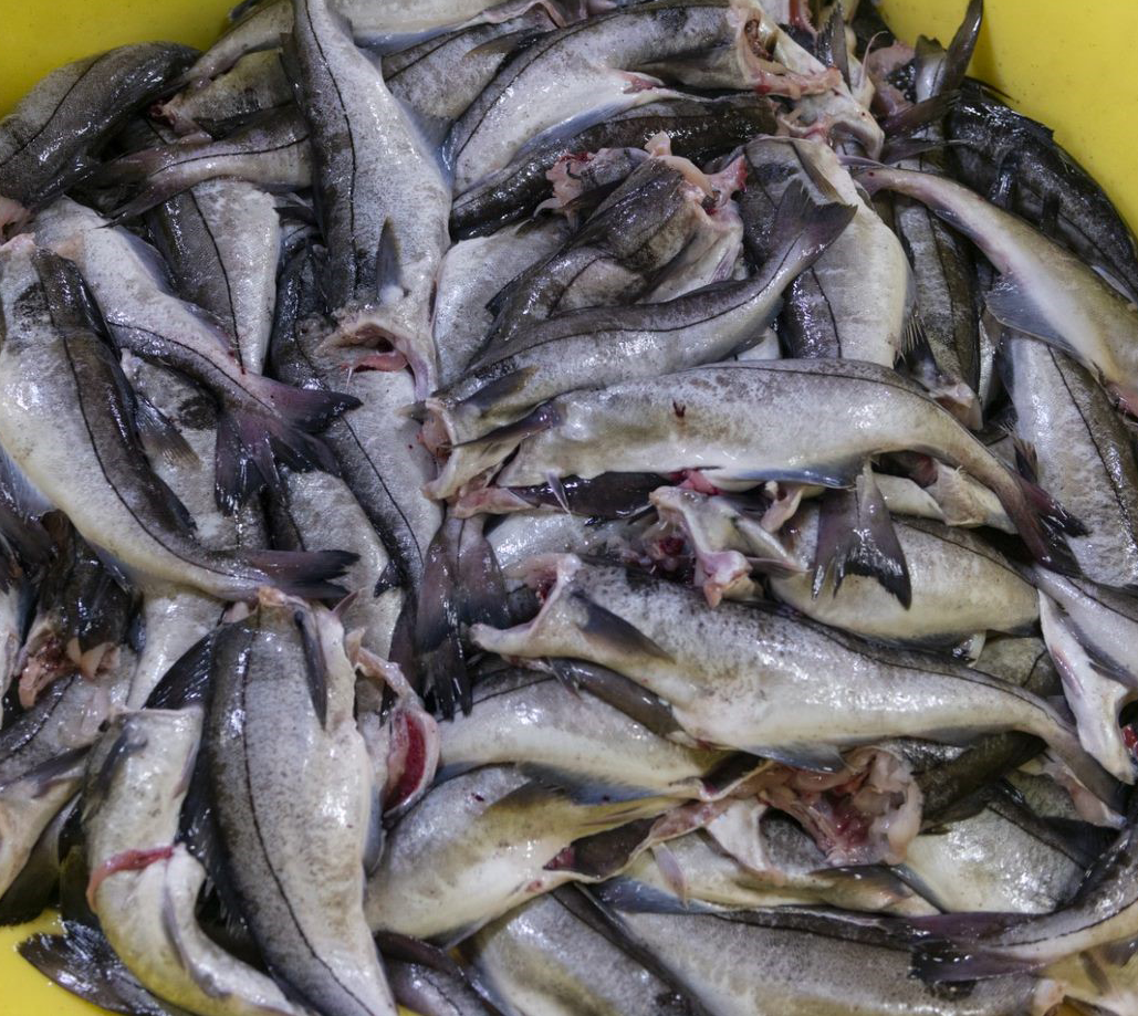 Manual inspection of cod fillets. Parasitic nematodes can be found embedded in cod tissue. Photo: Nofima Tromsø