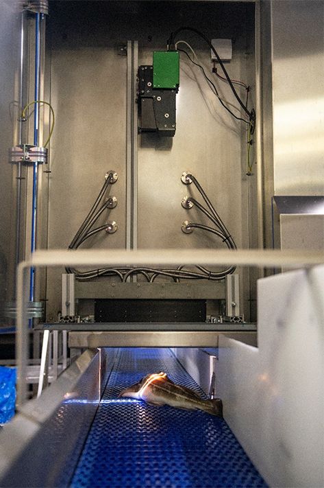 With the Baldur hyperspectral cameras from HySpex tailored for industrial applications, it is possible to automatically detect nematodes in cod fillets with a detection rate that is comparable or better to what is reported for manual inspection. The small size of the nematodes makes HySpex cameras ideal for this application with its high spatial resolution and image quality. The system can operate at a conveyor belt speed of 400 mm/s which meets the industrial requirement of assessing one fillet per second. This can reduce the workload for the trimmers significantly. The reduced manual handling of the fish will also have a positive effect on the quality and shelf life of the products and there is a potential for a waste reduction due to more precise trimming. The system is under further development in a new research project where both speed, detection rate, and detection accuracy are expected to be improved.