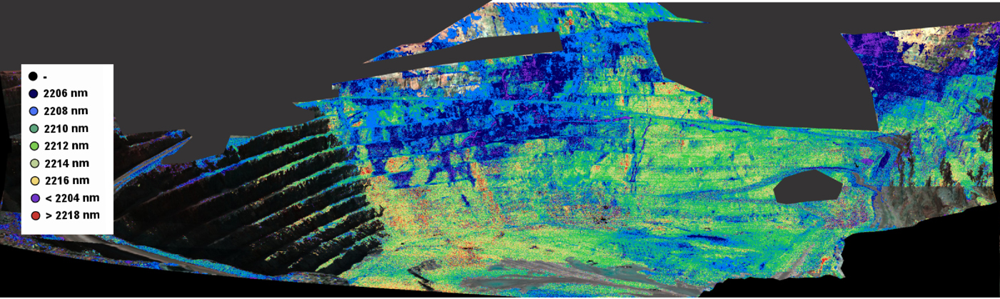 The key diagnostic feature of white micas is an absorption feature that occurs at approximately 2200 nm. The precise position of this feature is controlled in part by the octahedral cation composition of the white mica, which is influenced by the geochemical properties of the causative fluids and host rocks. This spectral variation can serve as an indicator of alteration type, intensity, and fluid geochemistry, and can be a proxy for metal grade, offering valuable insights for exploration efficiency. The position of this 2200nm feature shows a relationship with the proximity to the mineralized zone and differs across different deposit types. Meyer et al., (2022) offers a review of the position of the white mica feature its relevance for the following mineral deposits: base metal sulfide, epithermal, porphyry, sedimentary rock hosted gold deposits, orogenic gold, iron oxide copper gold, and unconformity-related uranium.