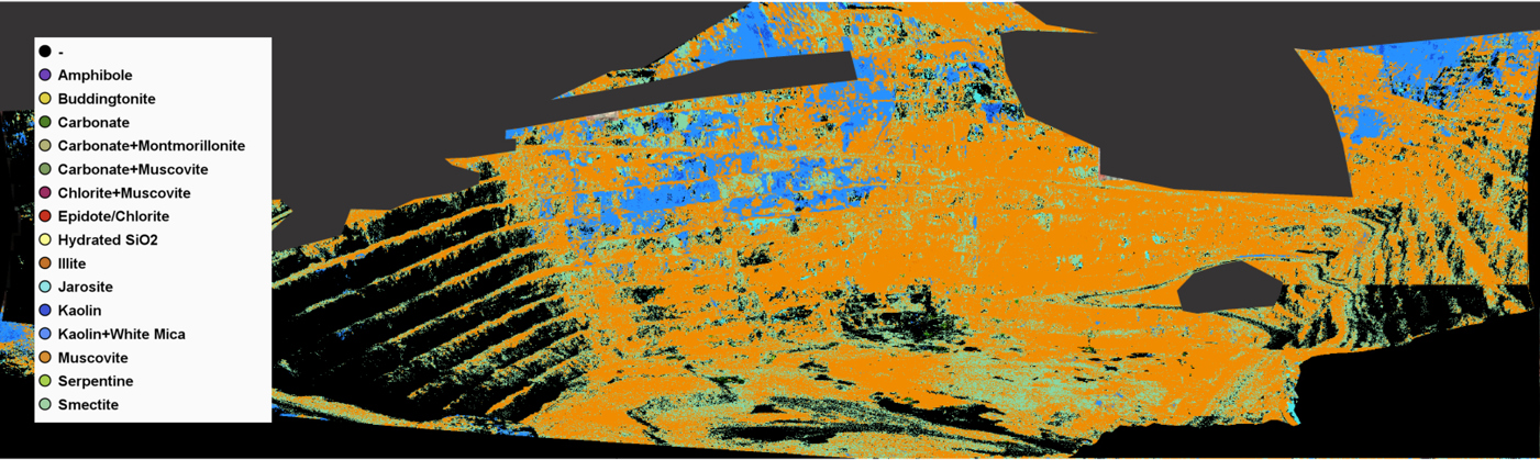 Minerals like muscovite, illite, and sericite represent common hydrothermal alteration products found in mineralized zones and ore deposits. Their accurate identification using hyperspectral remote sensing has been challenging due to their similar spectral characteristics. Therefore, these minerals are often grouped together and referred to as 'white mica.' Understanding their composition is crucial, as it can reveal valuable information about the underlying mineralized system and indicate areas of interest for further exploration campaigns.